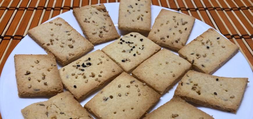 Se amesteca faina de migdale, faina de cocos, amidonul de tapioca, sarea si praful de copt intr-un bol. Se adauga semintele de in macinate dupa ce au fost inmuiate cateva minute in 2-3 linguri de apa (sau oul), smantana, uleiul, fulgii de drojdie (sau branza), apa si semintele de chimen si se amesteca pana se formeaza un aluat omogen si elastic, adaugand apa daca mai trebuie.