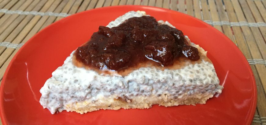 Turnati budinca de chia peste crusta, uniformizati si puneti vasul la frigider pentru 3-4 ore sau peste noapte.