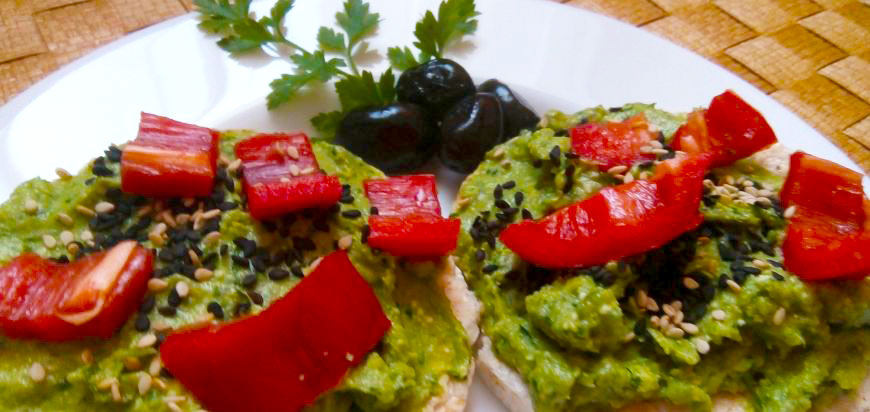 Se pun toate ingredientele in procesor - blender, in afara de ardei si semintele de susan. Se amesteca pana la consistenta dorita.